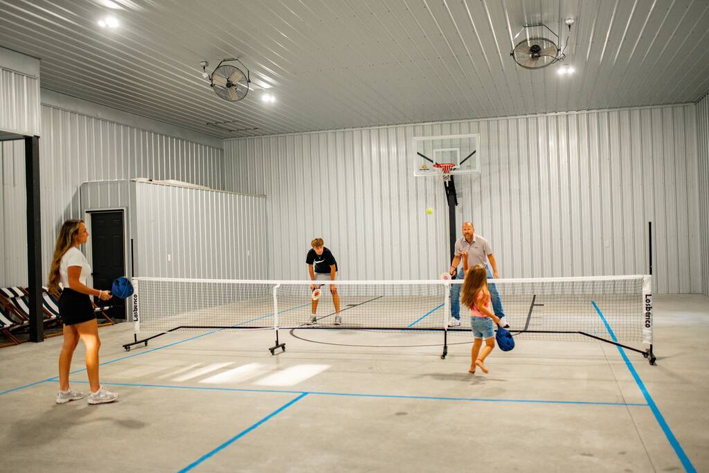 Escape to The Barndo Retreat at Stone Lake, in Cassopolis, MI. A luxury winter getaway near Swiss Valley Ski Resort, Edwardsburg Snowmobile Club’s ORV trails, and ice fishing on Stone Lake. Warm up in the LED-lit hot tub, unwind by the fire, or play indoors in the private sports barn- perfect for basketball, pickleball, or family fun on snowy days. Ideal for ski trips, winter weddings, family gatherings, or Notre Dame weekends. Summer dates are booking fast- reserve your stay early!